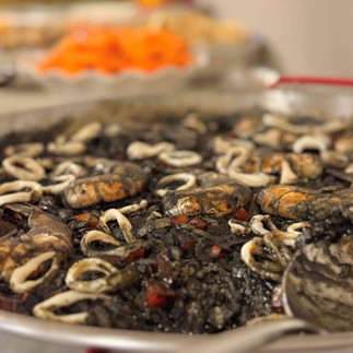 We paired those white wines with a typical Croatian dish called black rice. It is a risotto using cattle fish ink. Well, under the direction of our food coordinator (María), Rick, she and I prepared our three versions. We used paellera pans and I think they looked more Spanish “arroz negro” than Croatian.